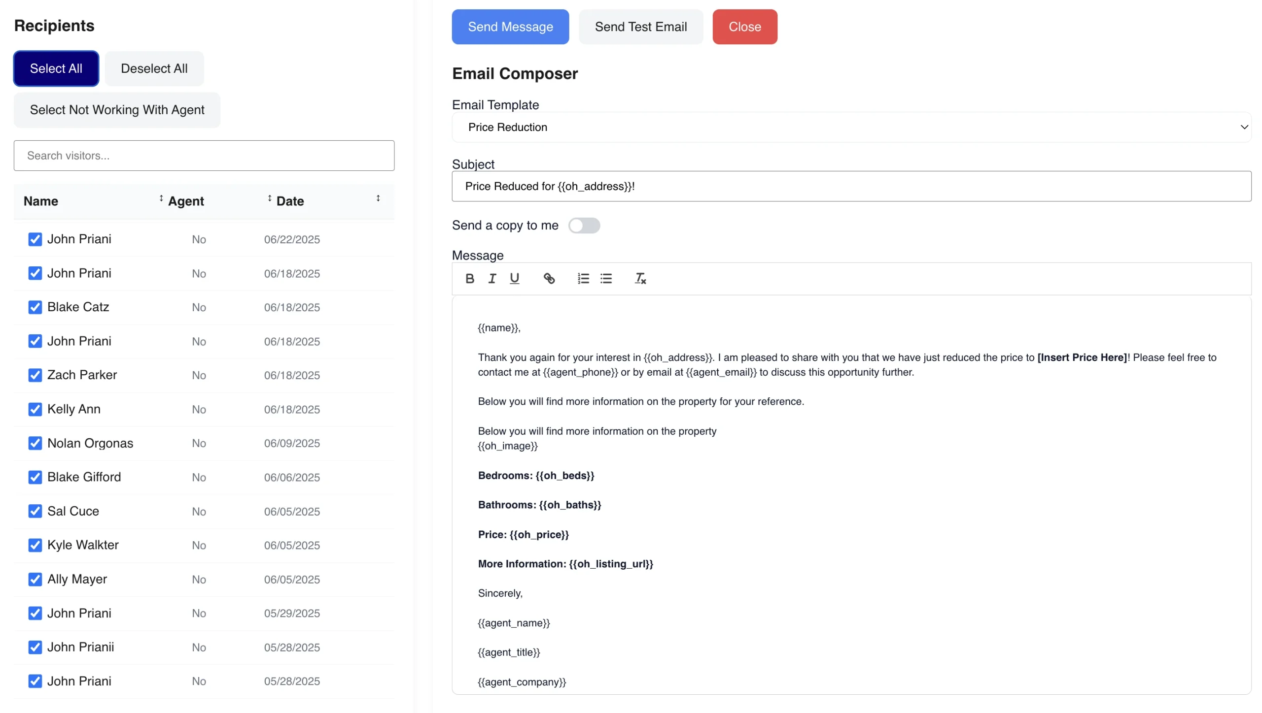 Send branded follow-up emails or bulk SMS automatically after the open house. Keep your pipeline warm and your name top of mind.