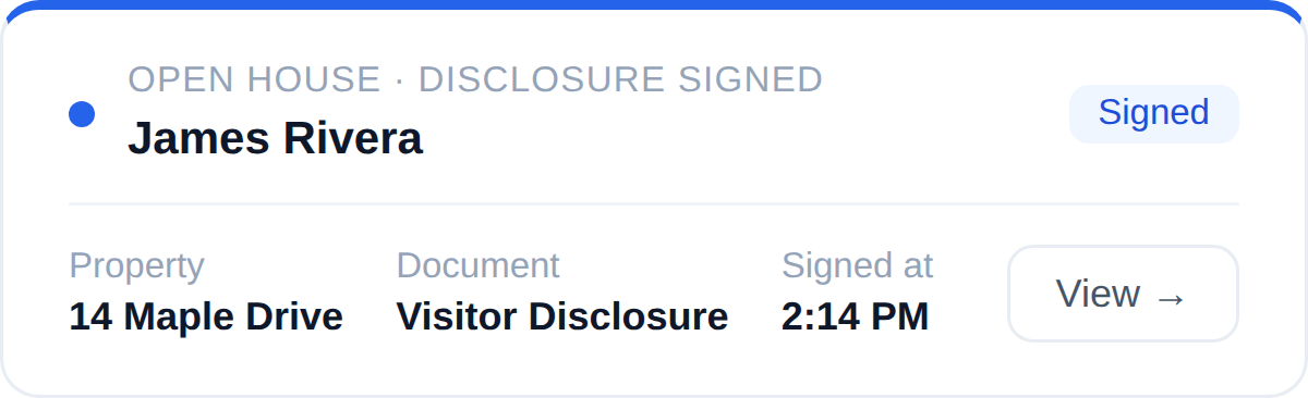 Run every open house end‑to‑end sign‑in, disclosures, follow‑ups.